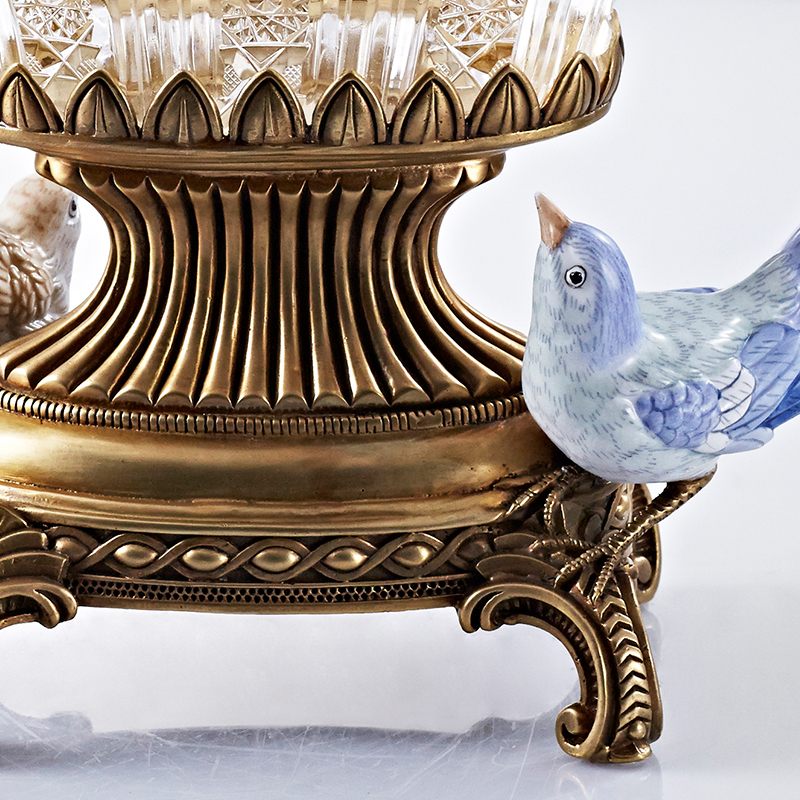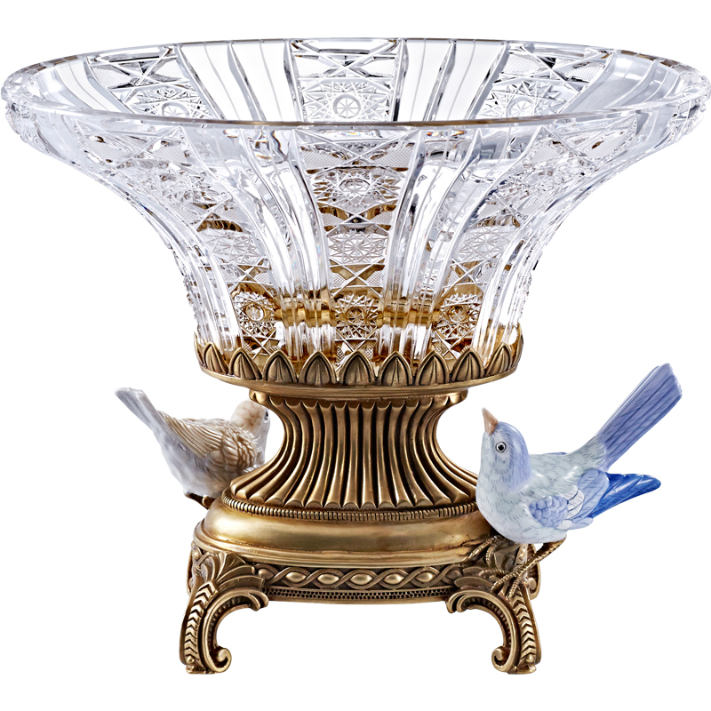 Phoenix Mercure luxury European-style transparent crystal glass double-porcelain bird fruit plate high-end gift hand-painted jewelry