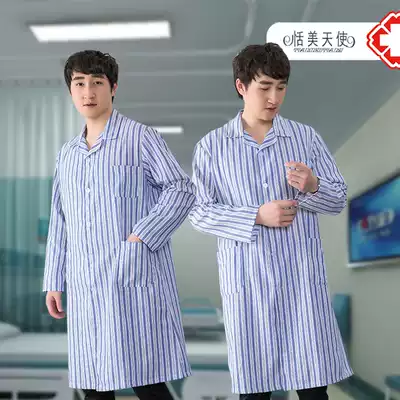 Men's model-blue and white strip suit collar long version sick clothing cotton Women's model-blue and white strip suit collar long version of sick clothing Cotton