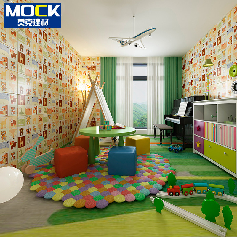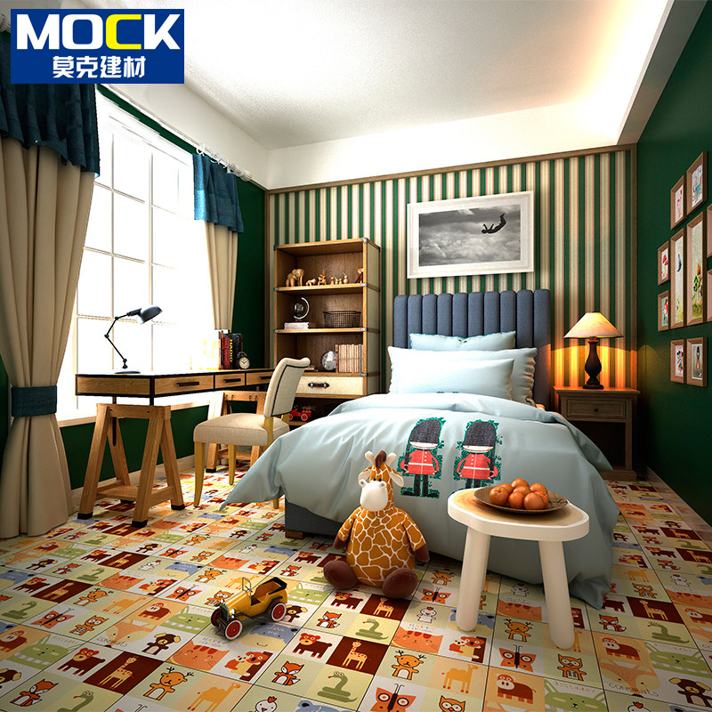 Cartoon tiles small animals Nordic flowers 300 Kindergarten children's room powder room kitchen wall tiles non-slip tiles