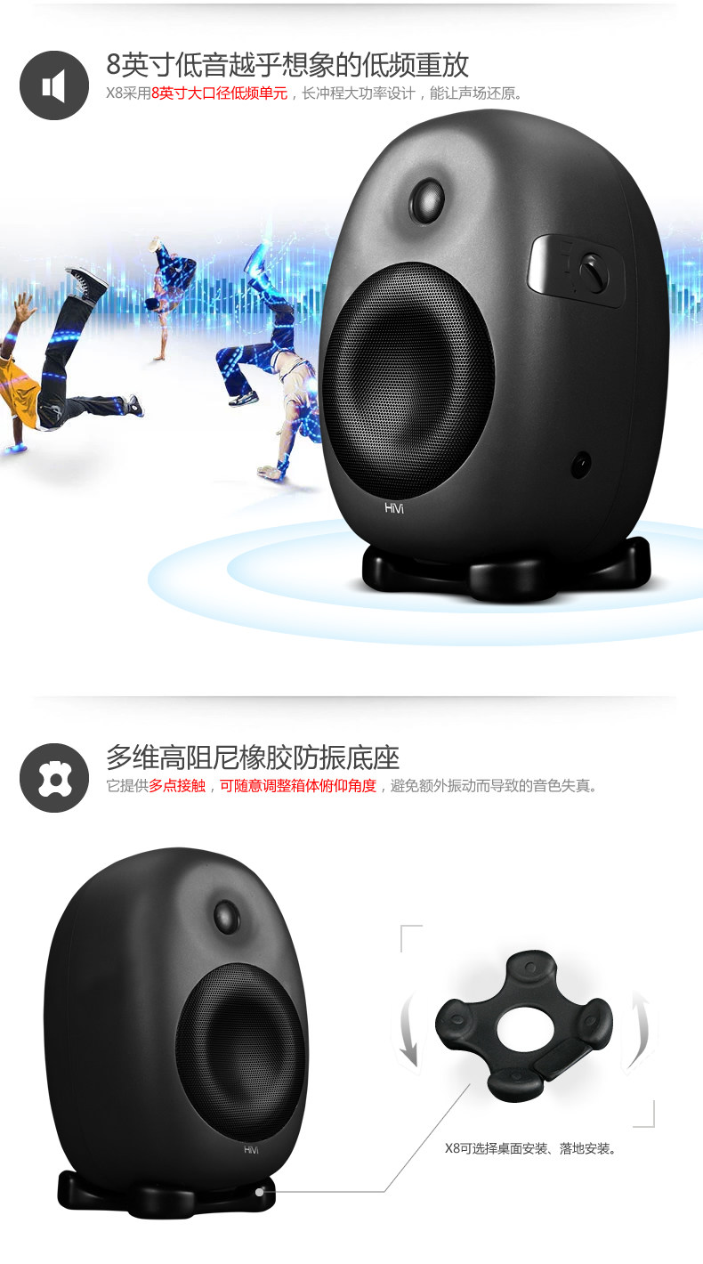 Huiwei X8 X6 monitoring hifi speaker, computer TV multimedia active bookshelf speaker, imported with built-in amplifier