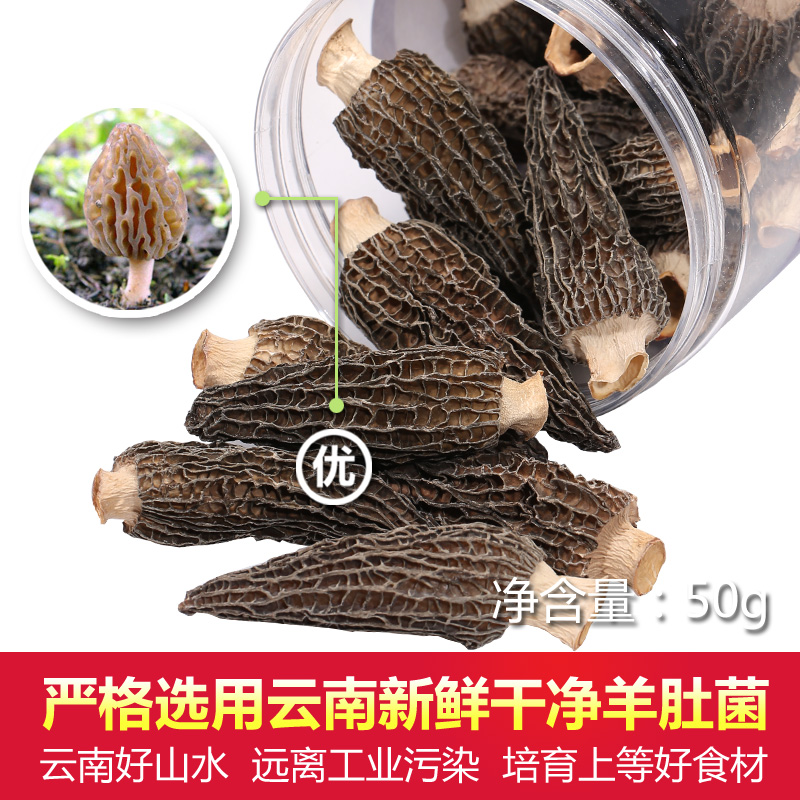 Mountain Lu Weng Morel mushroom dried goods Yunnan special fresh morel mushroom mushroom mushroom grade wild dried goods specialty probiotics 50g