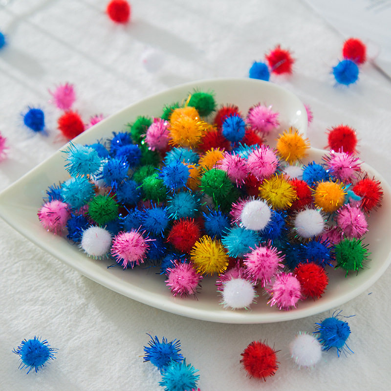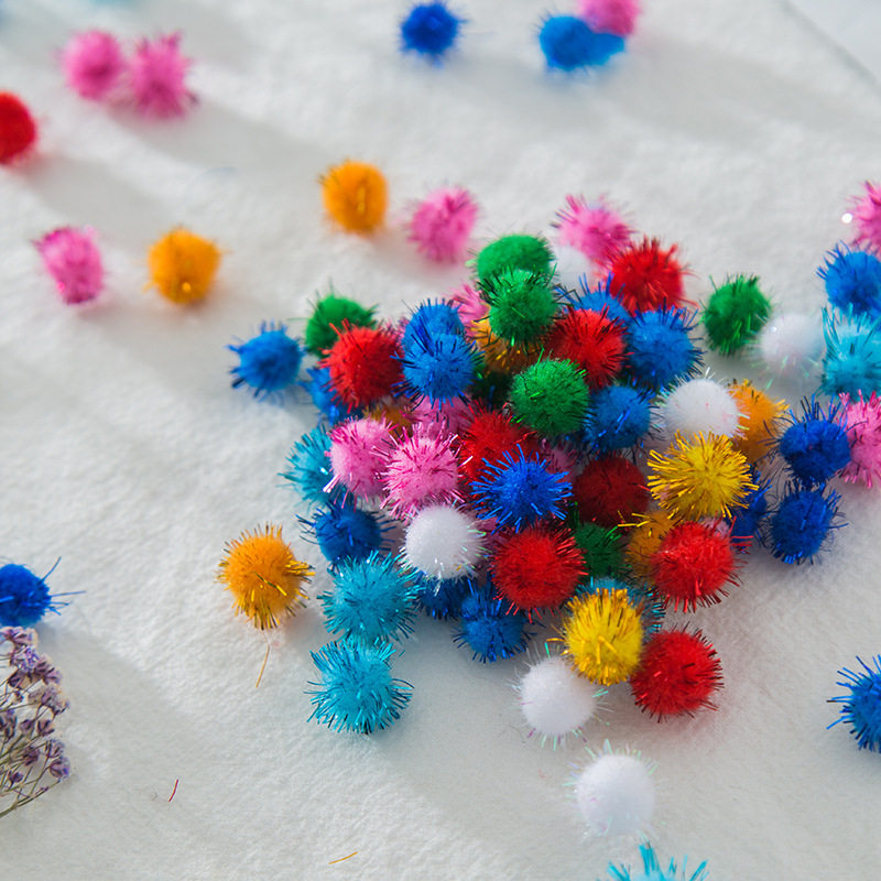 Glitter plush ball diy size mixed color glitter plush ball kindergarten children's creative handmade material decoration