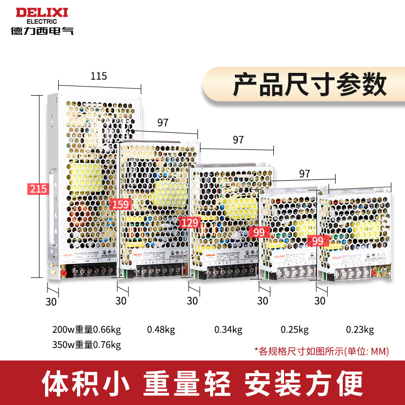 Delixi led switching power supply 220 turn 24v DC 12V transformer 5 volt light box power supply 50W monitoring 100W