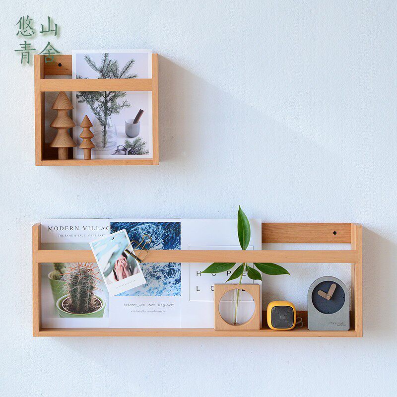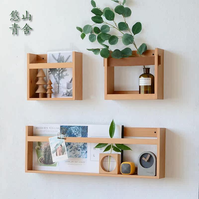 Nordic Solid Wood Nets Red Hanging Wall Shelves Wall Shelf Living Room TV Background Wall Decorated Children's Room Partitions
