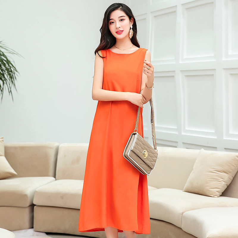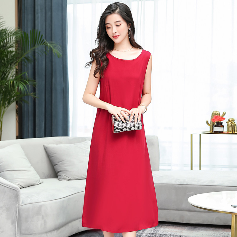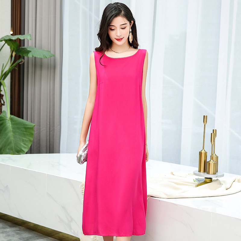 Fat Mom Summer Skin Sleeping Dress Large Length Sleeveless Midsleeveless Long Knee Lady Artificial Cotton Dress
