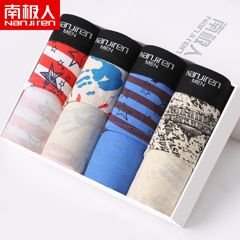 South Pole men's men Leica cotton triangular printed plus fattening underpants Summer sexy mid-waist comfortable four-corner shorts head damp