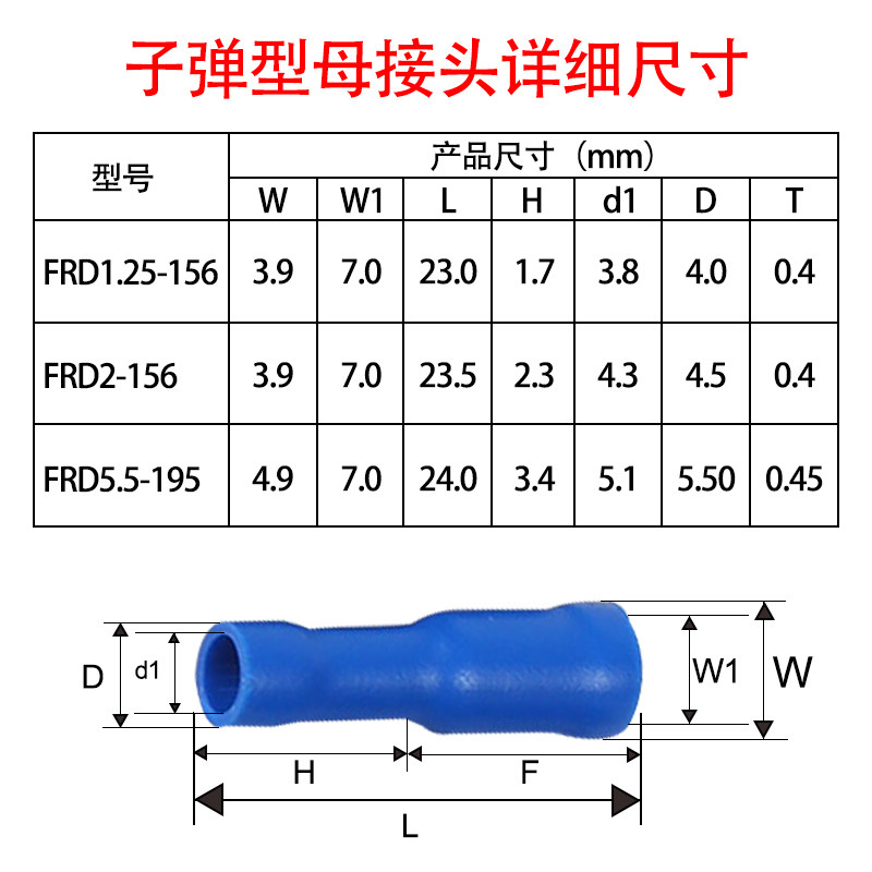 FRD1 25-156 bullet-shaped mother pre-insulation joint cold pressed end head wire wiring terminals 1000 only