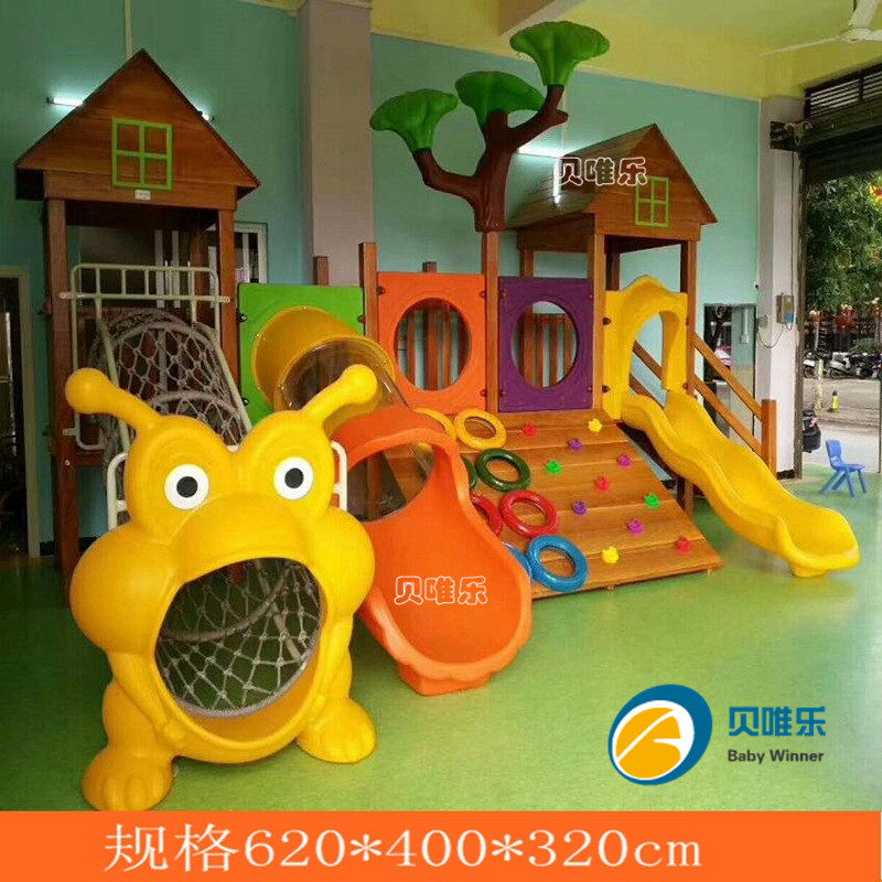 Kindergarten children's arch cage expansion swing bridge climbing frame Net wall drilling hole Physical training combination Huanghuali wood slide