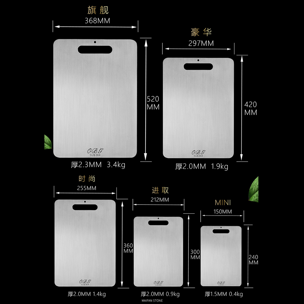 Increase the kitchen food grade 304 stainless steel cutting board, cut the fruit cutting board, antibacterial and mildew-proof chopping board