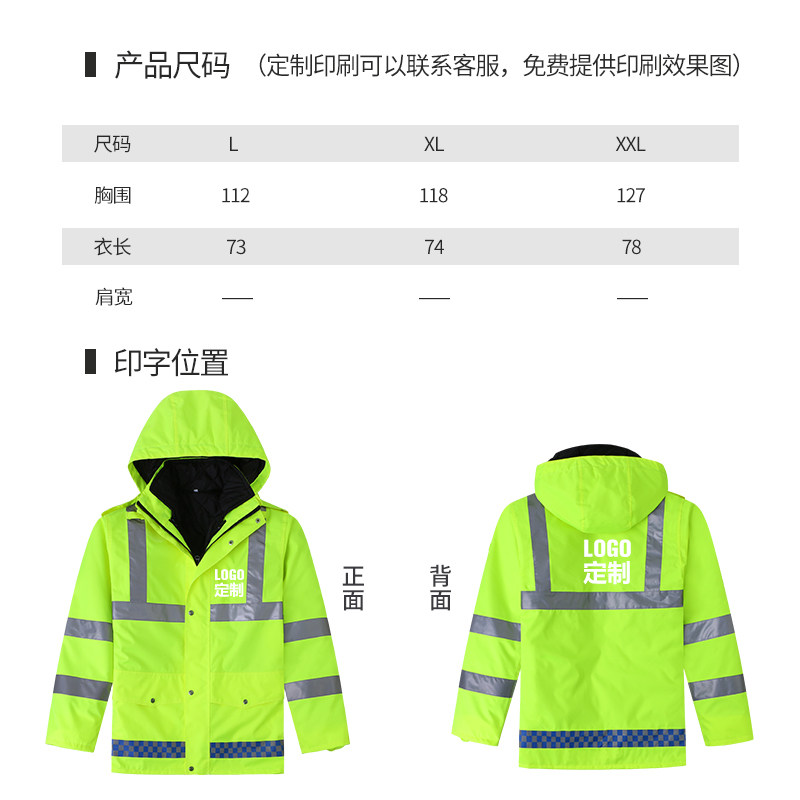 Reflective cotton coat men winter thick traffic safety cotton jacket fluorescent jacket highway cold jacket coat