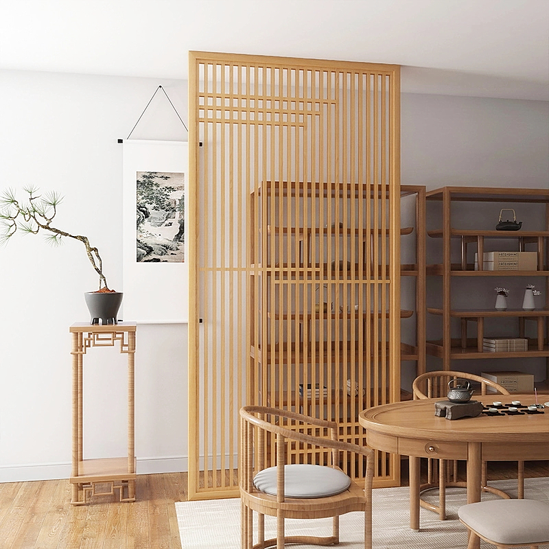 Japanese-style screen entry partition living room modern minimalist lattice bedroom hollow solid wood grille Chinese-style lattice doors and windows
