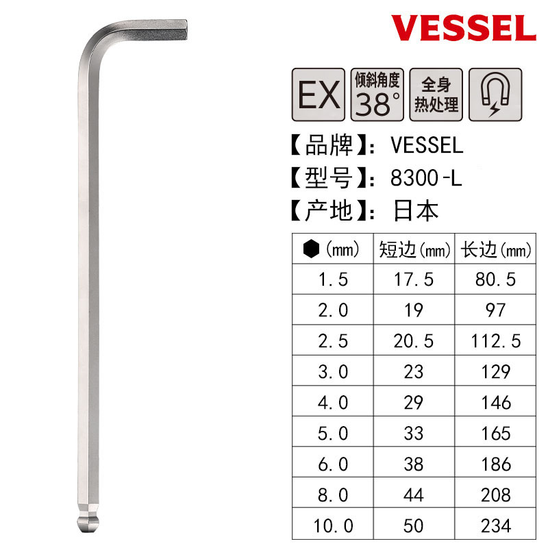 Japan imports VESSEL Weiwei public system of inner hexagon wrench with head ball head hexagonal L type screwdriver single