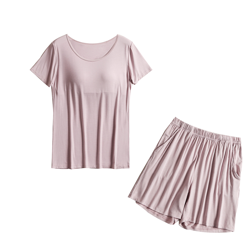 Women's summer thin pajamas with chest pads women's summer thin pajamas bra cups one-piece casual short-sleeved shorts two-piece suit