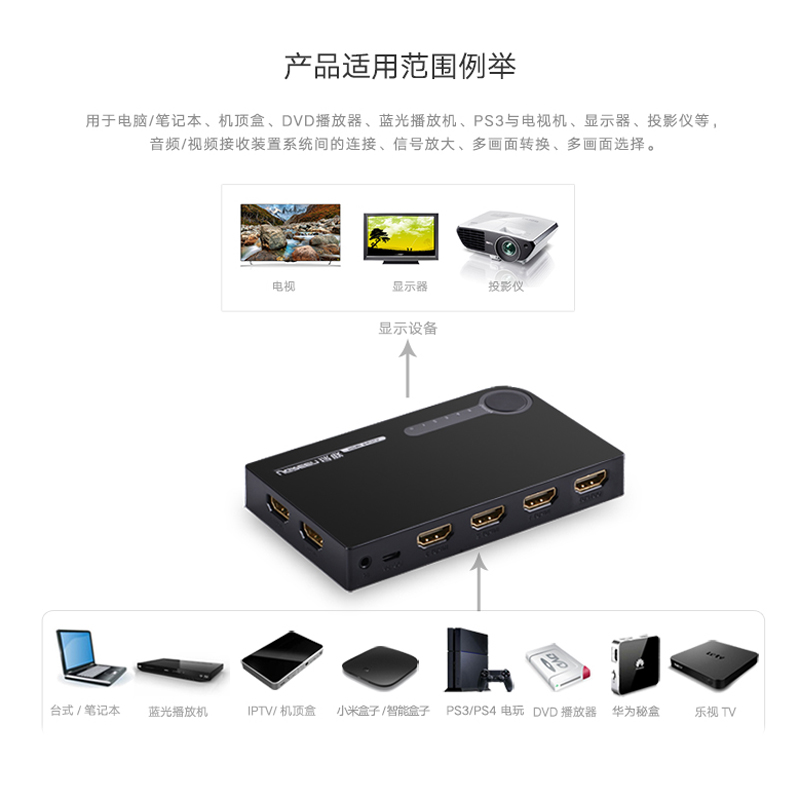 Green United HDMI switcher 5 in 1 out HDMI dispenser 4 Five further out high-definition film with remote control switching 3d