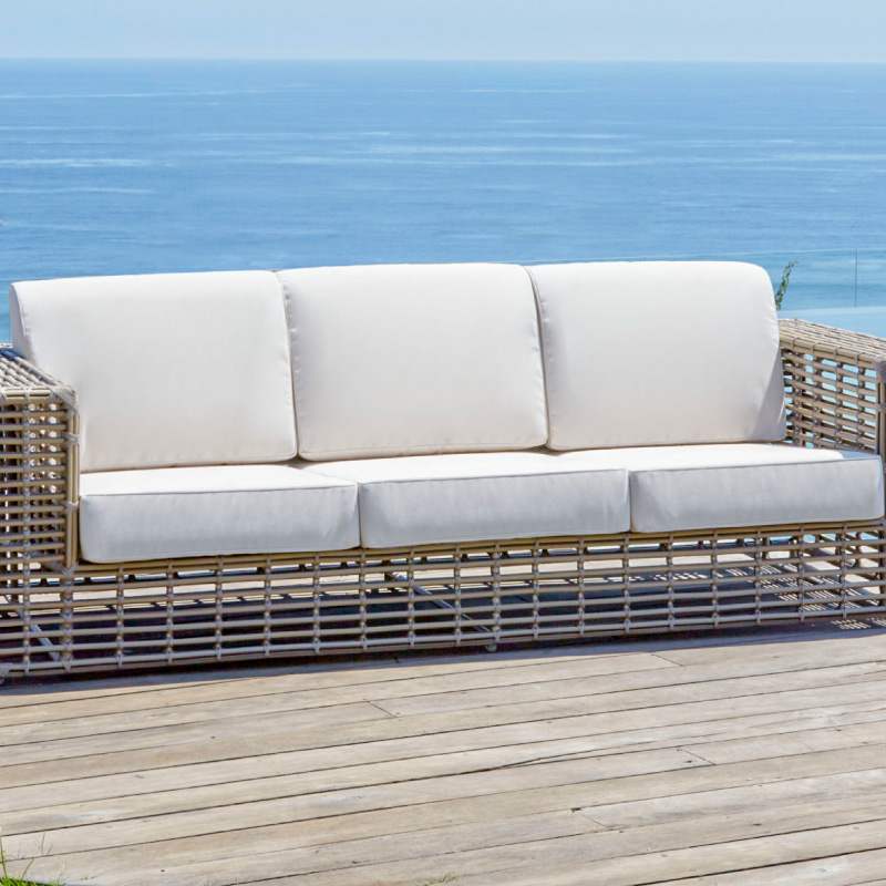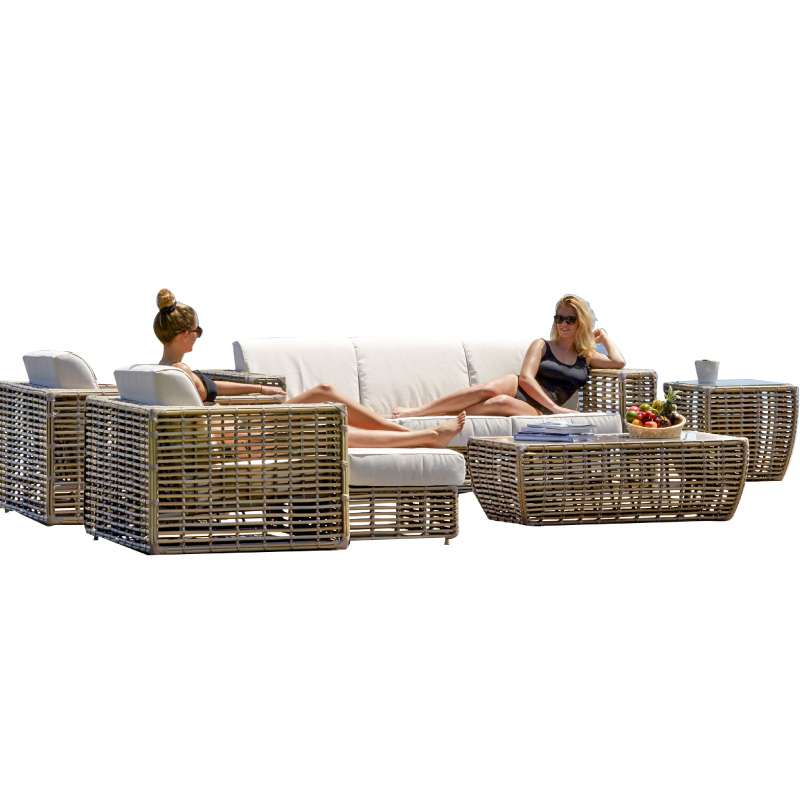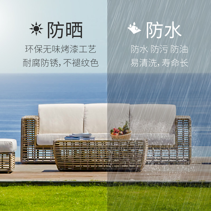 outdoor rattan sofa hotel leisure outdoor single triple coffee table combination beige waterproof thick rattan patio sofa