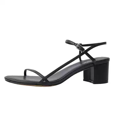 Yili rice gray 2021 summer new one word with thick heel middle heel simple open toe Roman fairy style sandals female tide