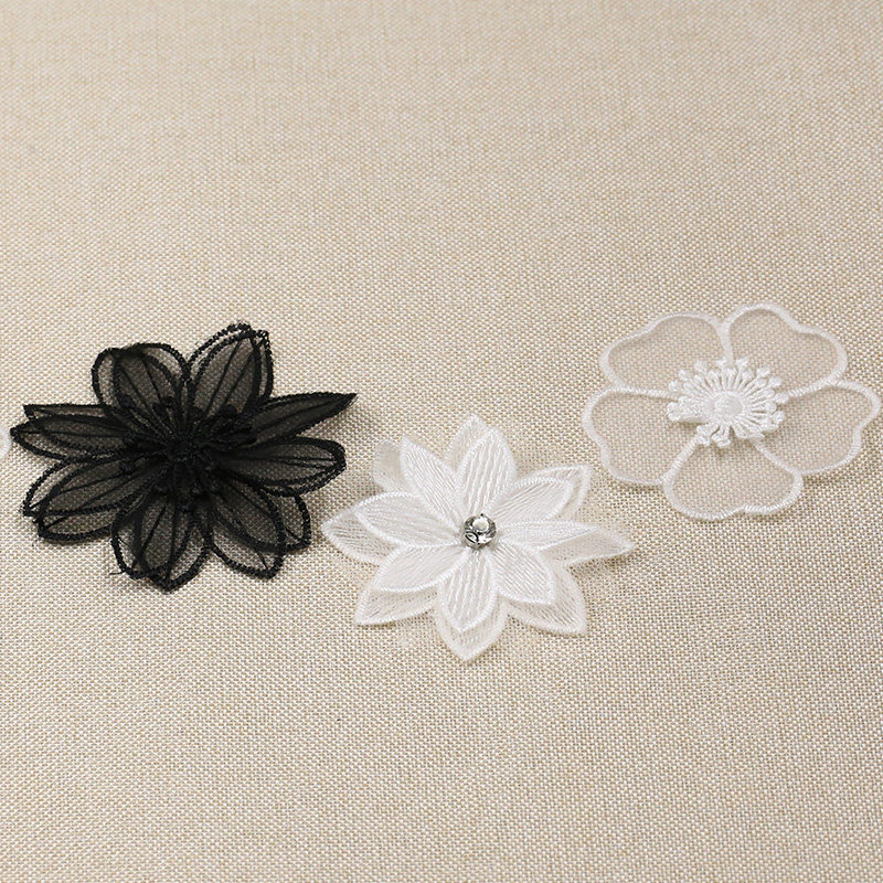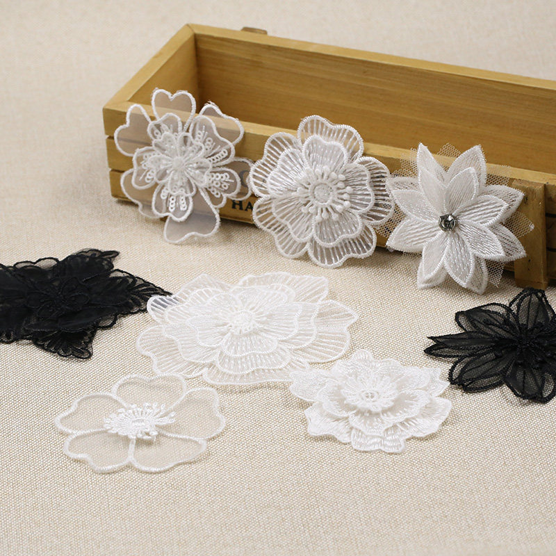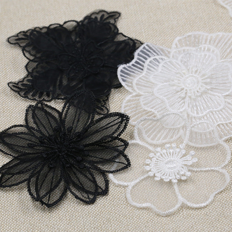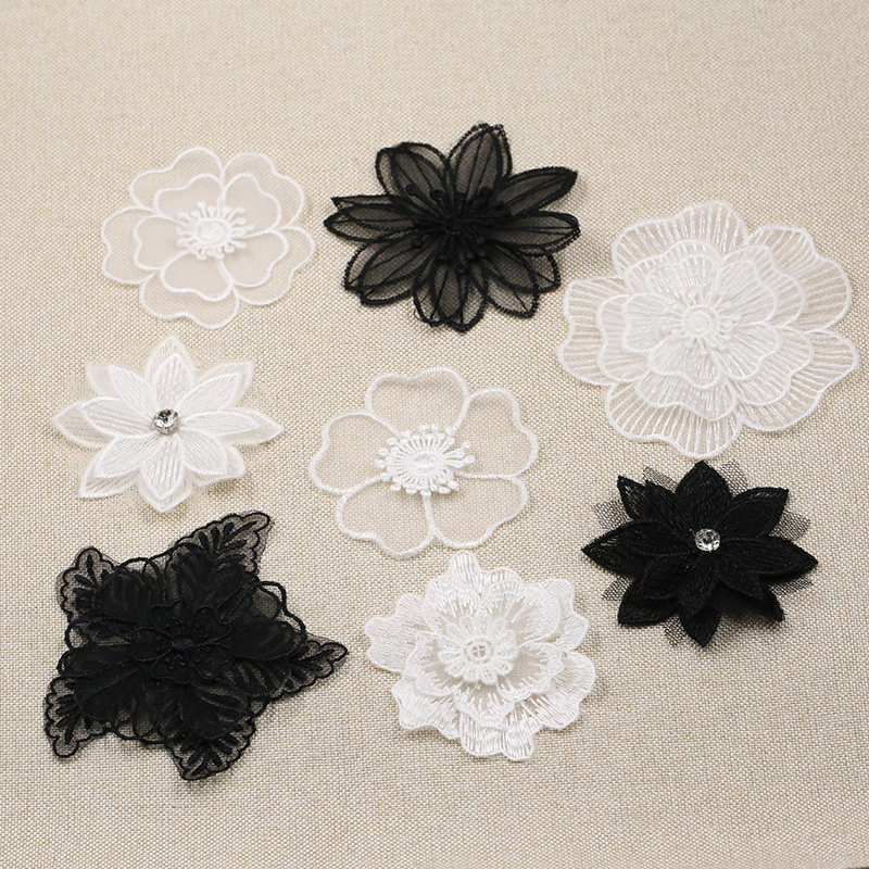 White lace Eugen gauze patch small number of clothes DIY collage decoration embroidered black flowers Broken Hole Patch Accessories