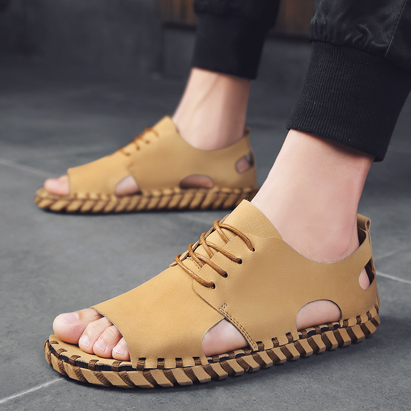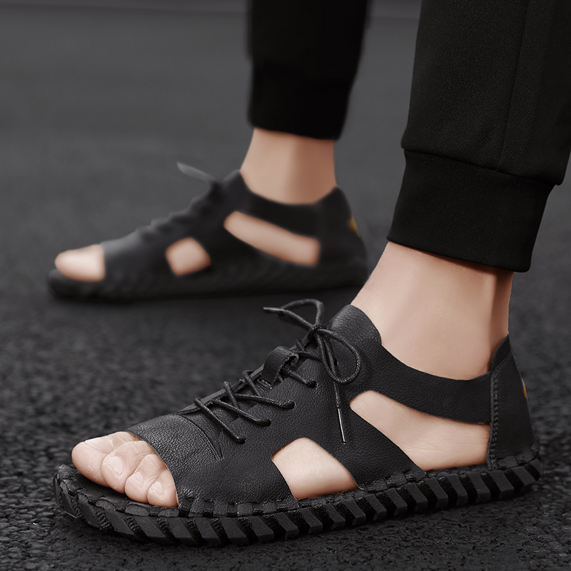 Roman Leather Sandals Men's Tide 2022 Summer Nets Red Outside Wearing Fashion Soft Casual Driving Teenagers Men's Shoes Beach Shoes