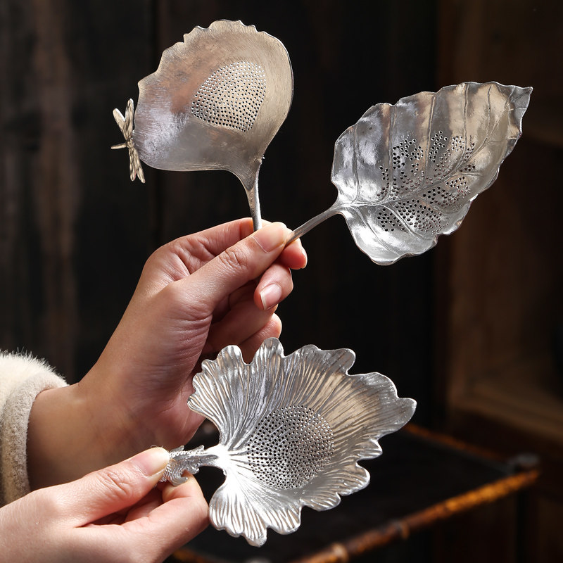 Gingko Tin Tea Leak Banana Leaf Tin Tea Leak Gold Fish Tin Tea Leak Gold Small Monk Silver Base Gingko Tin Tea Leak Silver Base Banana Leaf Tin Tea Leak Silver Base Gold Fish Tin Tea Leak Silver base