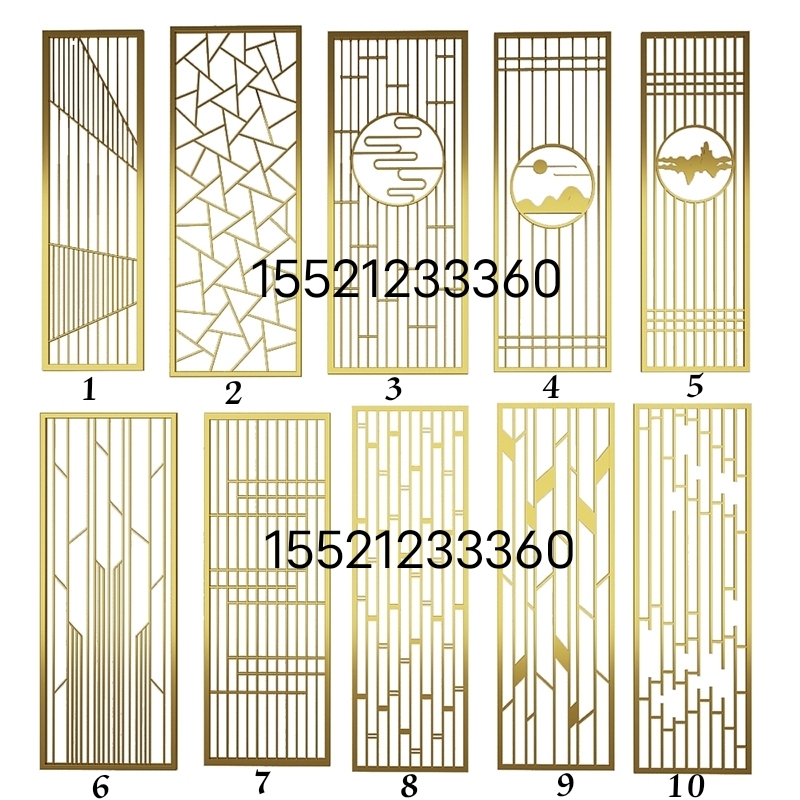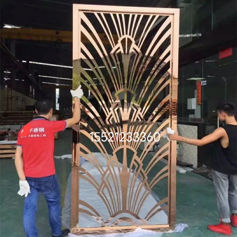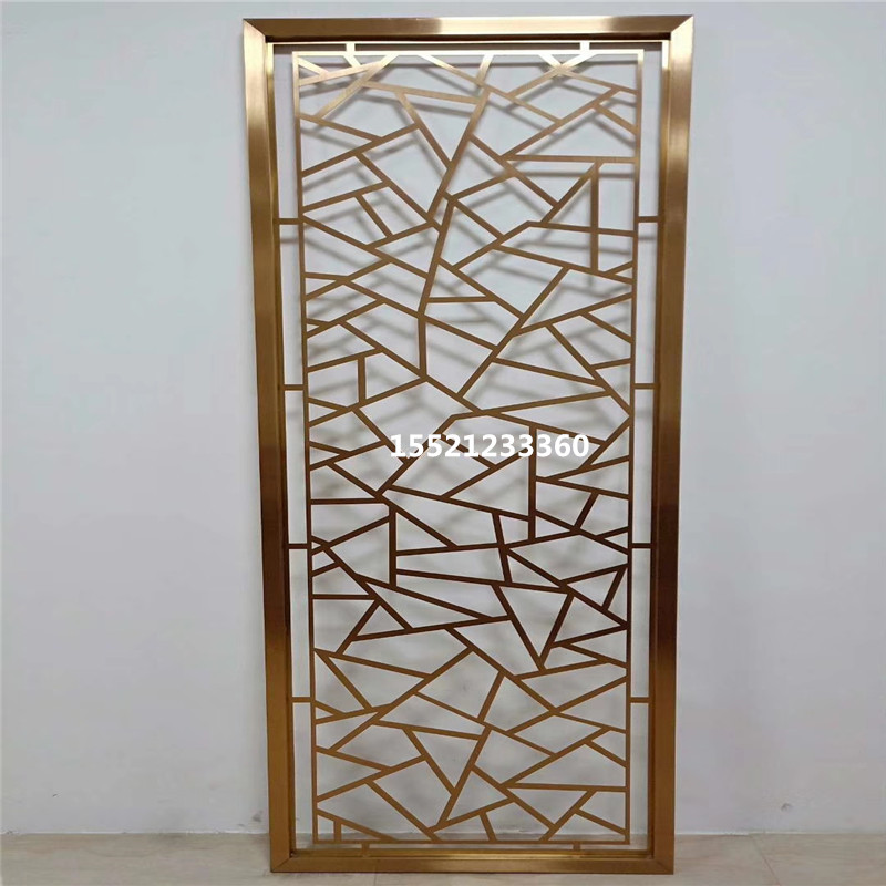 Titanium metal stainless steel Screen modern minimalist living-room champagne-champagne light and luxurious aluminium carved partition wall hollowed-out flower lattice