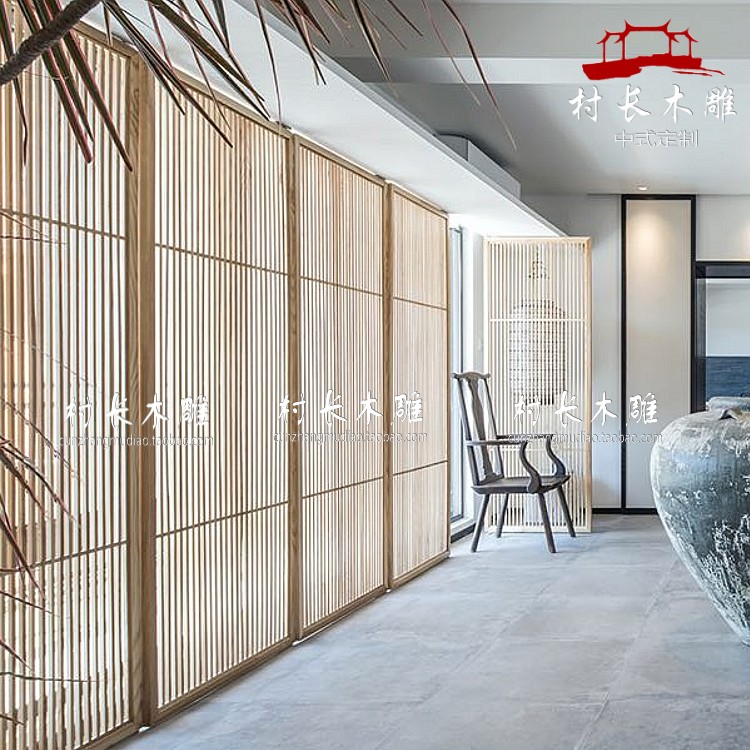 Wood carved flower lattice partition Xuanguan shielded decorative seat screen Chinese imitation ancient hollowed-out solid wood folding mobile grille screen