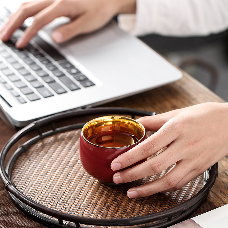 Ink-dyed Remain King Shun Artisanal Raw Mine Gold Leaf 24K Gold Golden Cup Master Cups of Tea Tea Cup Single Cup Tea Bowl