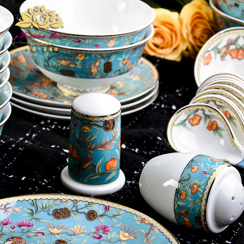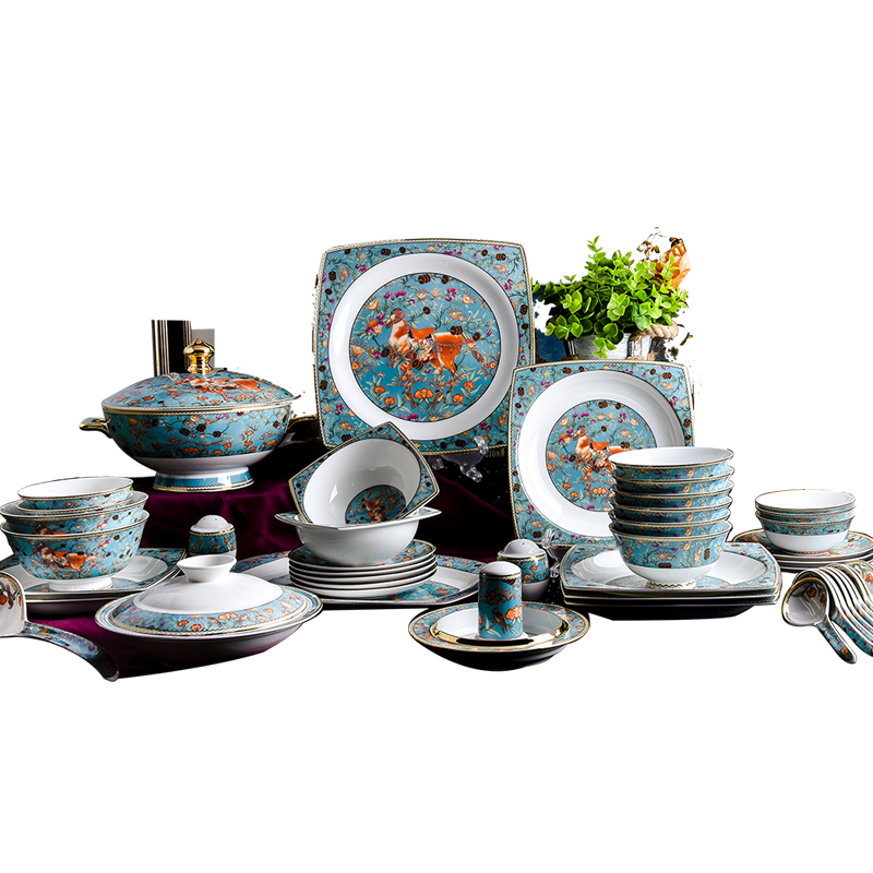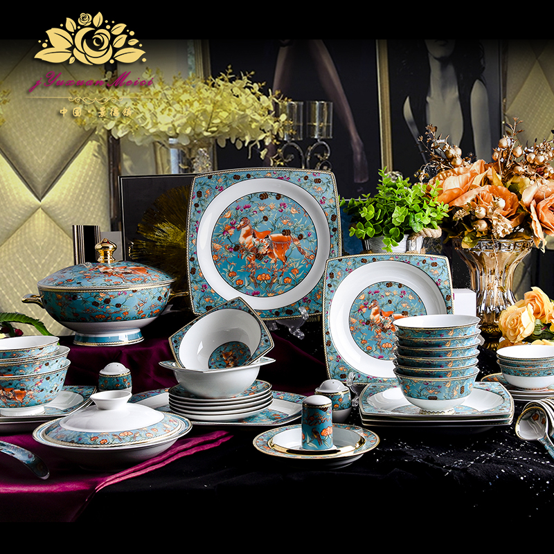 Cutlery Suit Bowls Dish Home 72 pieces minimalist upscale European style bowls tray Jingdezhen Porcelain Love Horse Dishes-Taobao