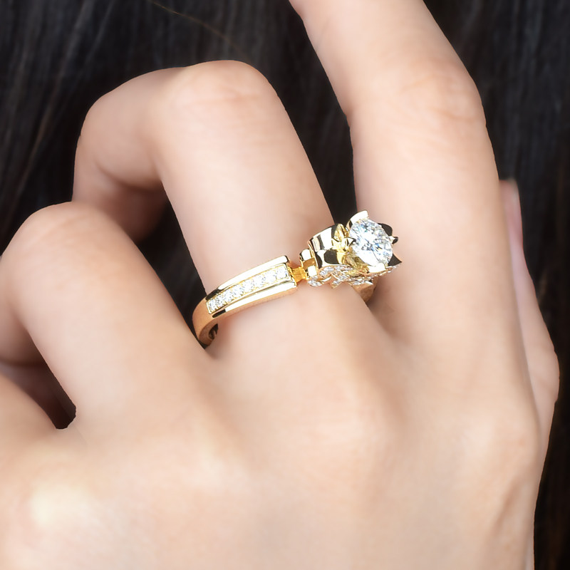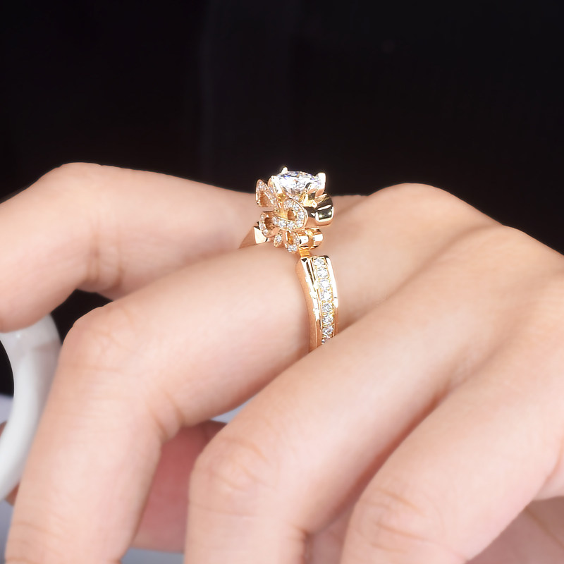 American CC Mozambique ring girl 18K gold 1 carat diamond ring royal temperament royal temperament cosmetic star similarly