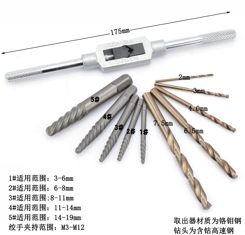 11 pieces of sleeve broken screw extractor severed head screw rod extractor suit Anti-tooth screw tool to take off the screw