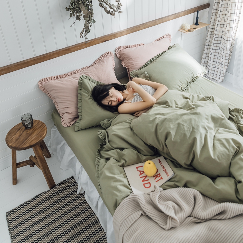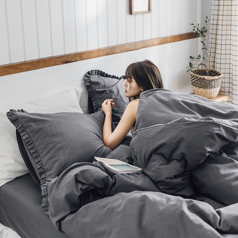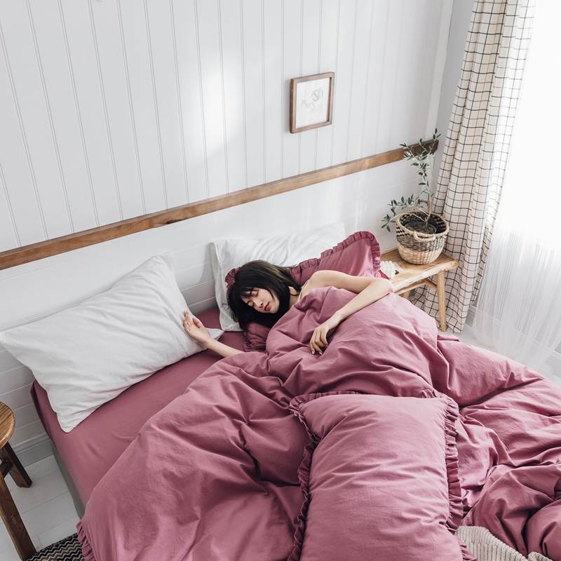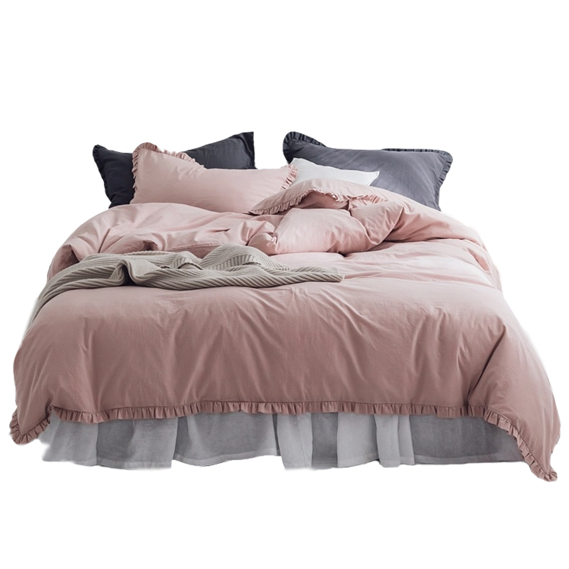 Day Style Minimalist Folds Lace Girl Hearts All-cotton Washed Cotton Beds Four Pieces Of Pure Cotton Double Bed Accessories