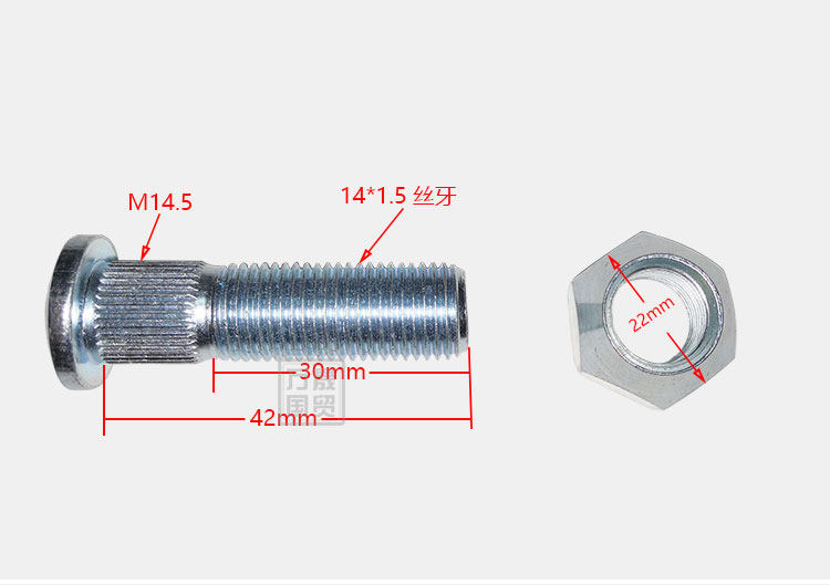 Forklift Haar head rear wheel steering wheel hub hub bolt and mother tire screw wheel hub screw force 3