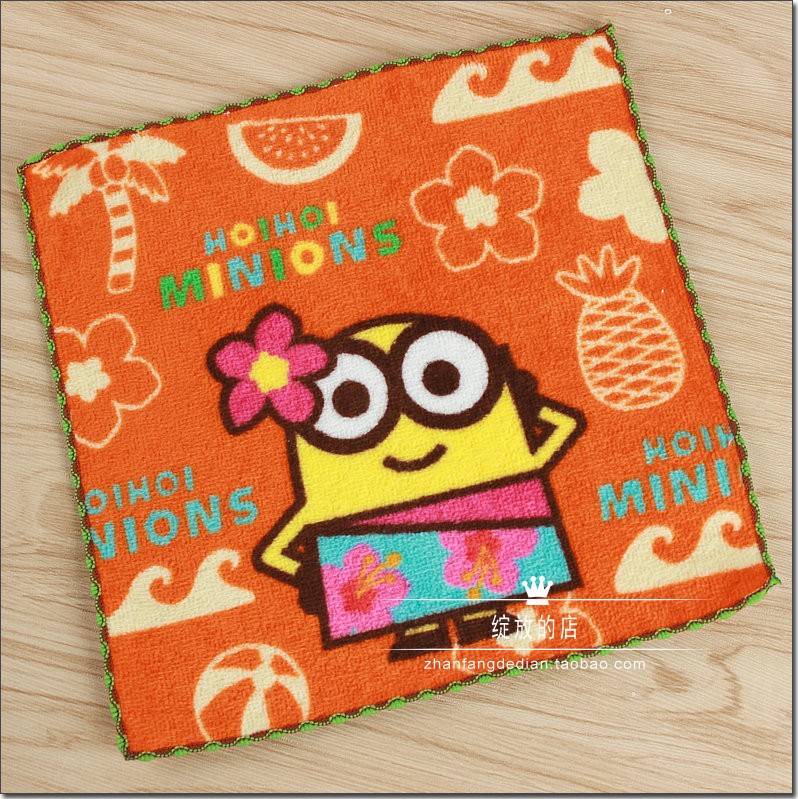 New hot selling recommended foreign trade Japanese original pure cotton cut velvet printing small yellow kernel cute cartoon saliva towel handkerchief