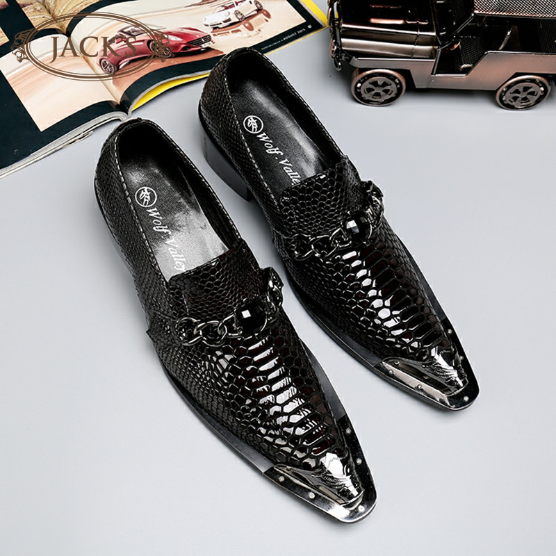 JACKS European and American trendy youth stream pointed iron head foreign trade original single men's shoes banquet hairdresser presided over fashion leather shoes