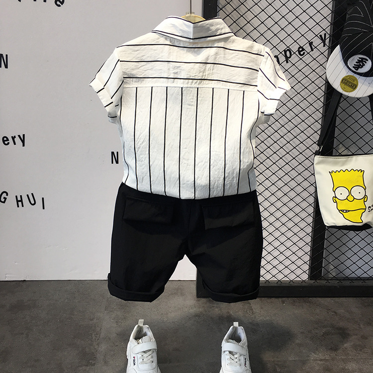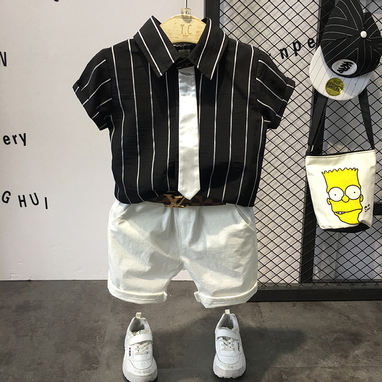 Boys summer short-sleeved shirt suit 2021 new 5-year-old 1 child 3 child 2 baby summer school uniform 7-year-old 6