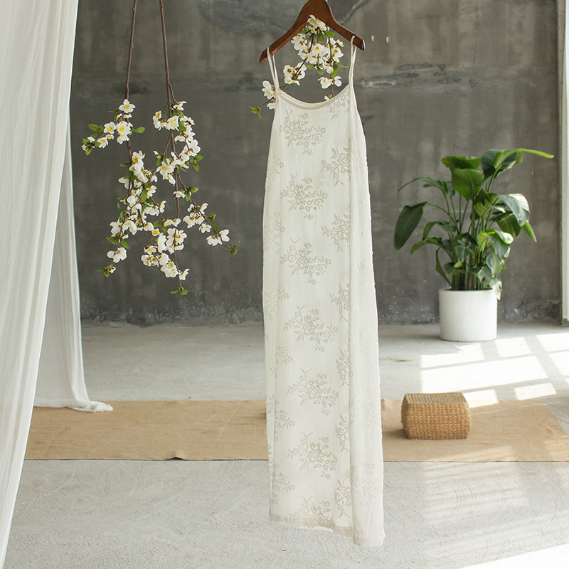 Strangeness flowers open lanflap (both) white inner hitch long dress embroidered pendant with dresses (genuine silk) answer
