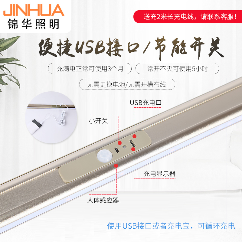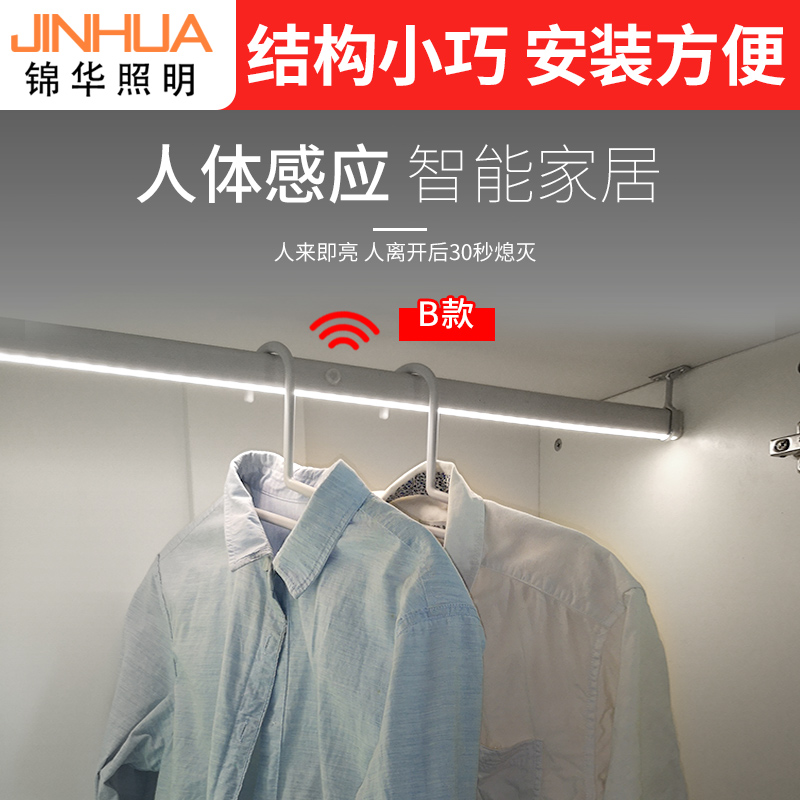 LED clothes pole light Intelligent body induction light Wardrobe wardrobe hanging clothes pole with light USB charging power supply clothing pole