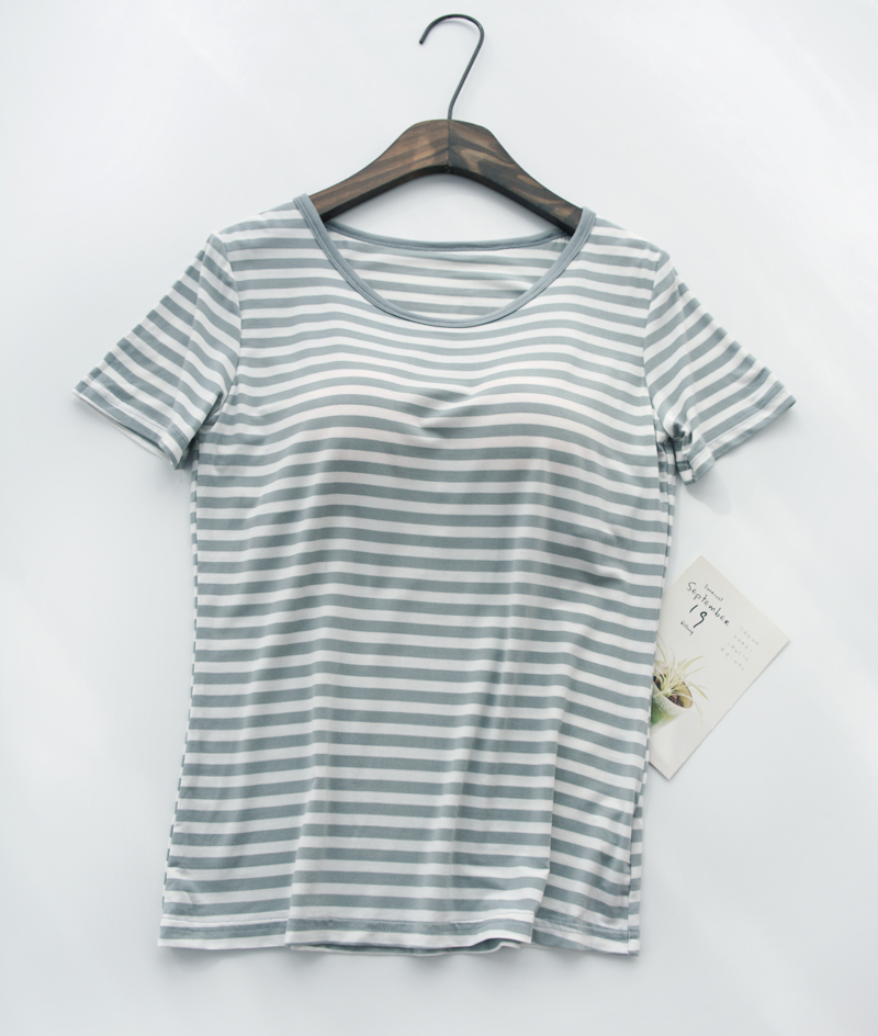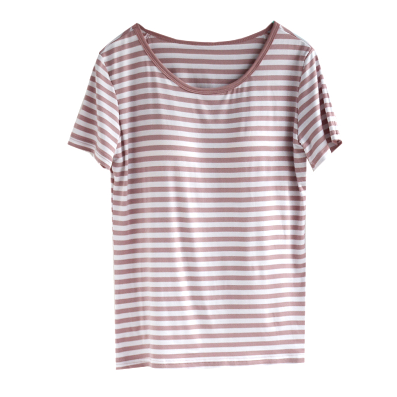 Summer women's T-shirt short sleeve modal stripes base shirt top yoga exercise no wear bra cup