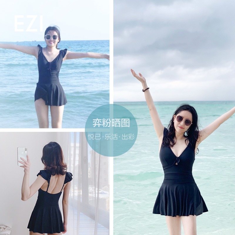 Yizi swimsuit new small chest gathered conservative swimsuit women cover belly thin one-piece skirt large size halter swimsuit