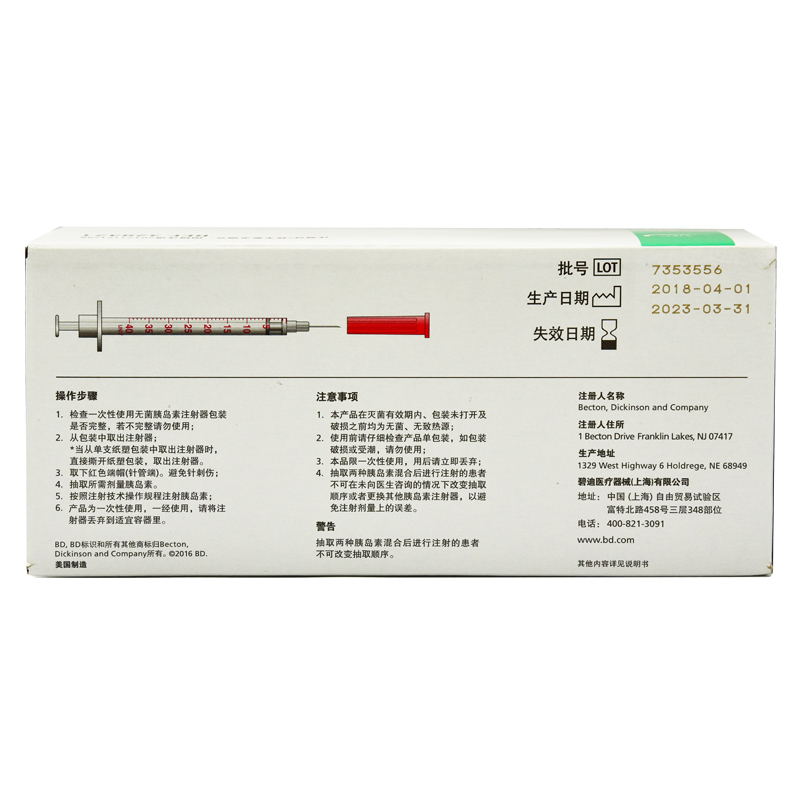 100 US BD Shusharp U40 disposable sterile insulin syringe pen 1ml Diabetes Needle needle