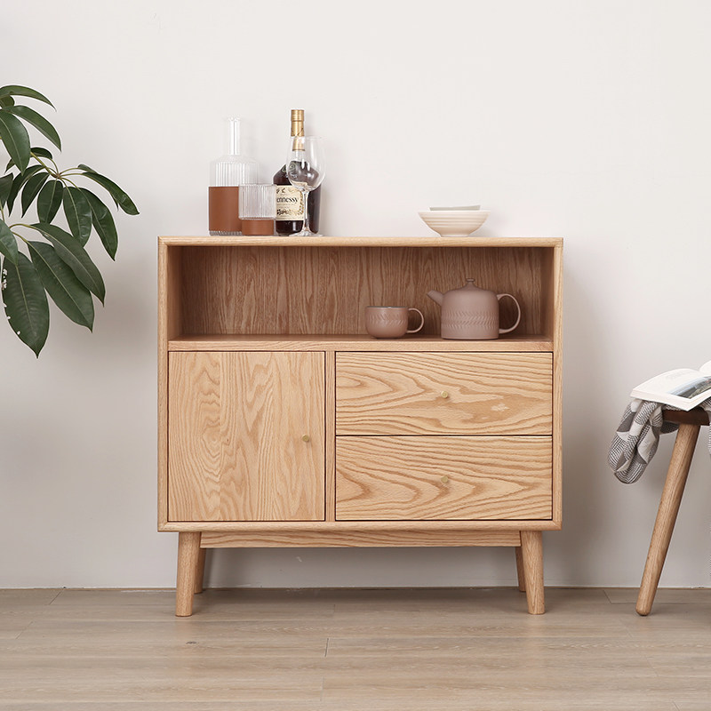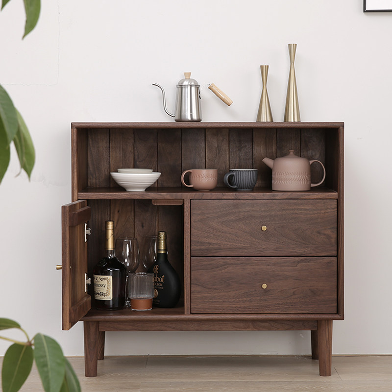 Solid wood sideboard log furniture red oak black walnut Nordic sideboard storage cabinet solid wood tea cabinet - Taobao