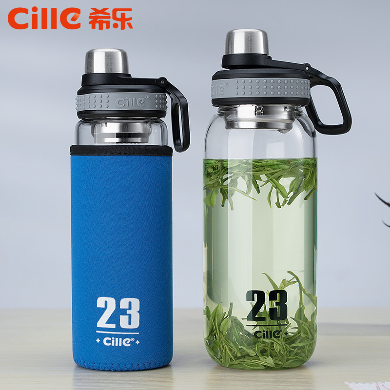 Xile glass large capacity teacup Men's outdoor sports portable water cup with filter cup Creative personality trend