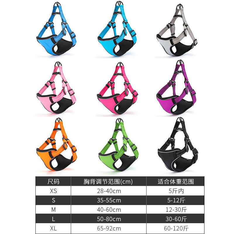 XS-(chest circumference 28-40CM recommended 5kg) S-(chest circumference 30-55CM recommended 5-12kg) M-(chest circumference 40-60CM recommended 12-30kg
