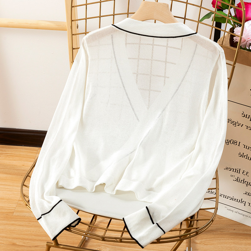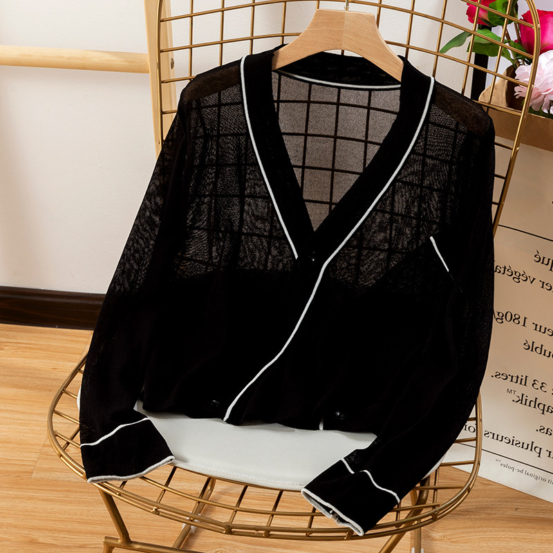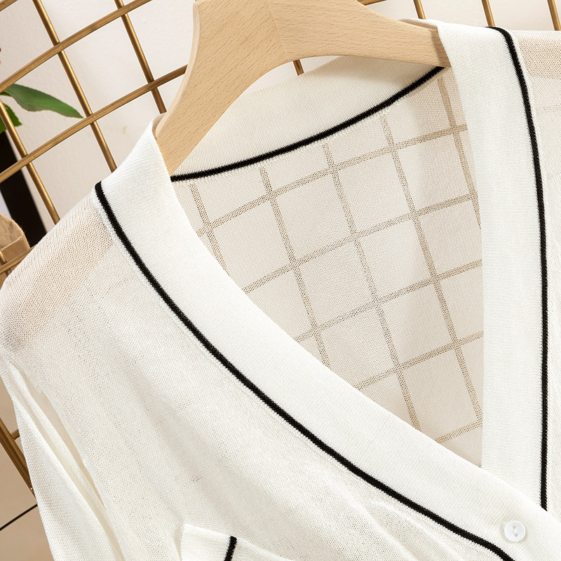 Summer ice silk sunscreen cardigan with knitted sweater women's ultra-thin breathable ice hemp shawl three-quarter sleeve air-conditioned shirt coat
