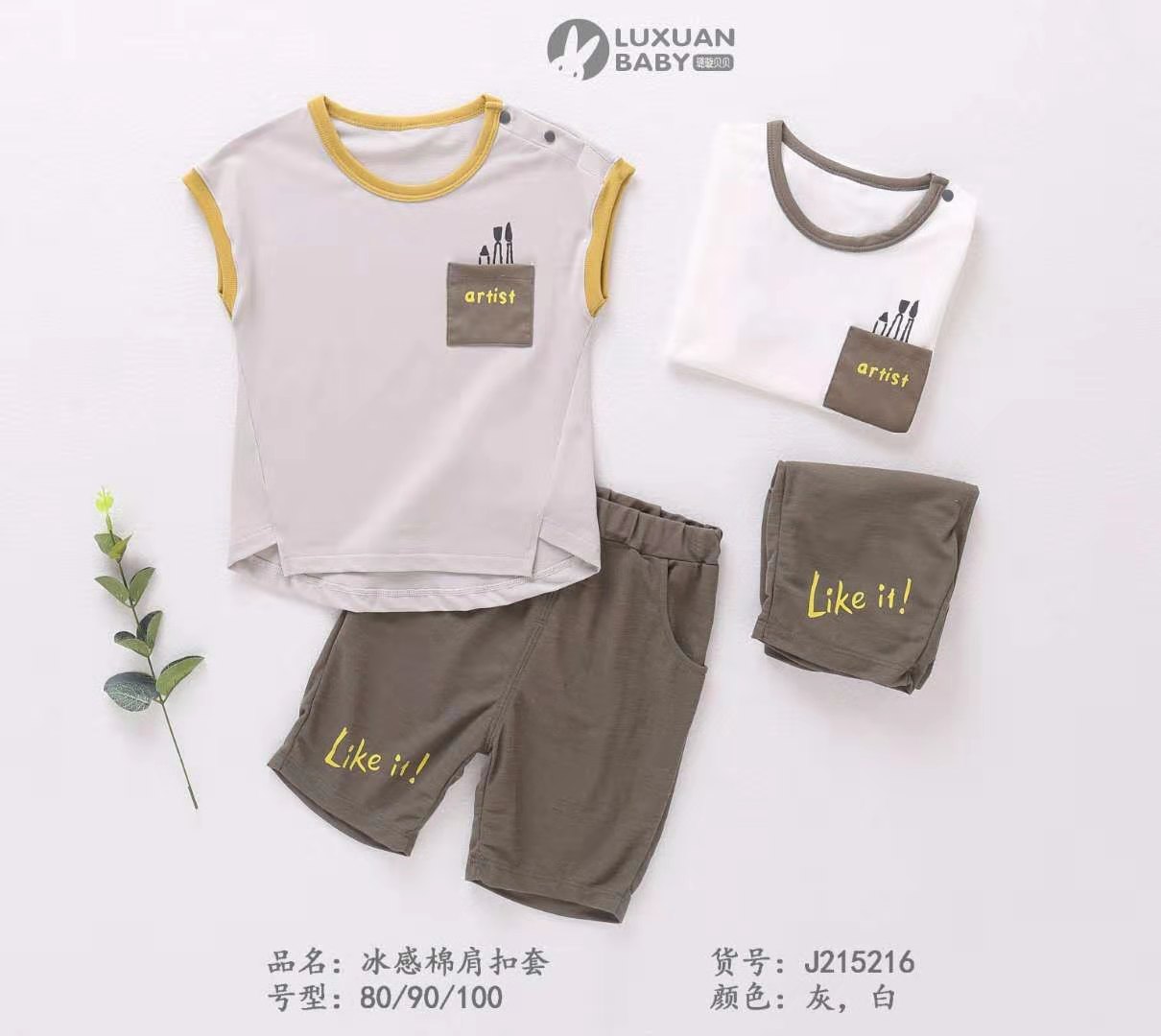 Luxuan baby ice-sensing cotton short-sleeved suit summer baby colored cotton shorts short-sleeved children's cotton thin clothes
