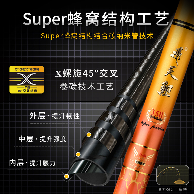 Hong Kong Yielong Flying Sky carp 3 5H fishing rod ultra-light ultra-hard 28-angle fishing rod fishing rod