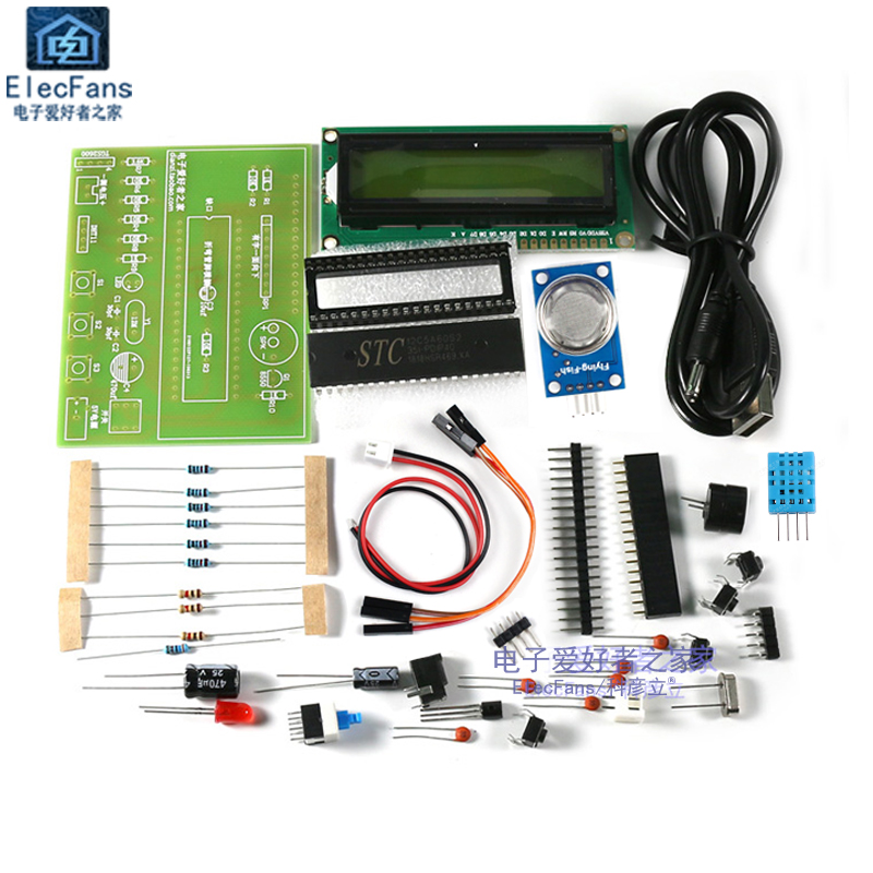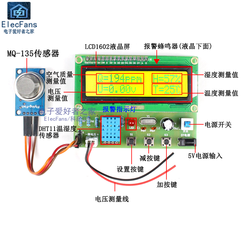 (Parts) MQ-135 Air Quality Combustible Gas Detection Alarm Kit DHT11 Temperature and Humidity Measuring Instrument