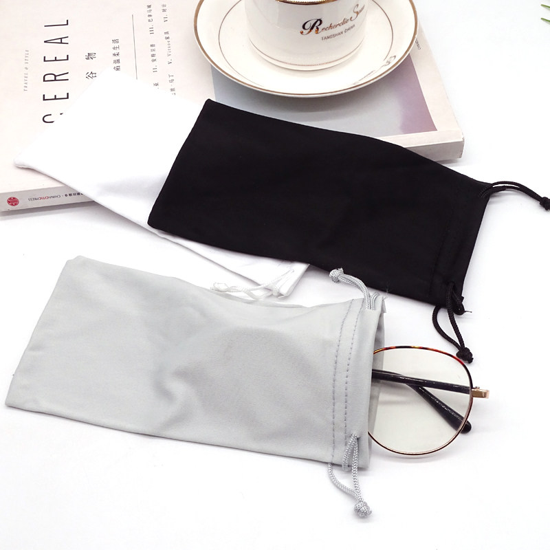 Microfiber Glasses Bag Custom Black White Grey Fleece Sunglasses Bag Drawstring Pocket Cotton Printable Logo