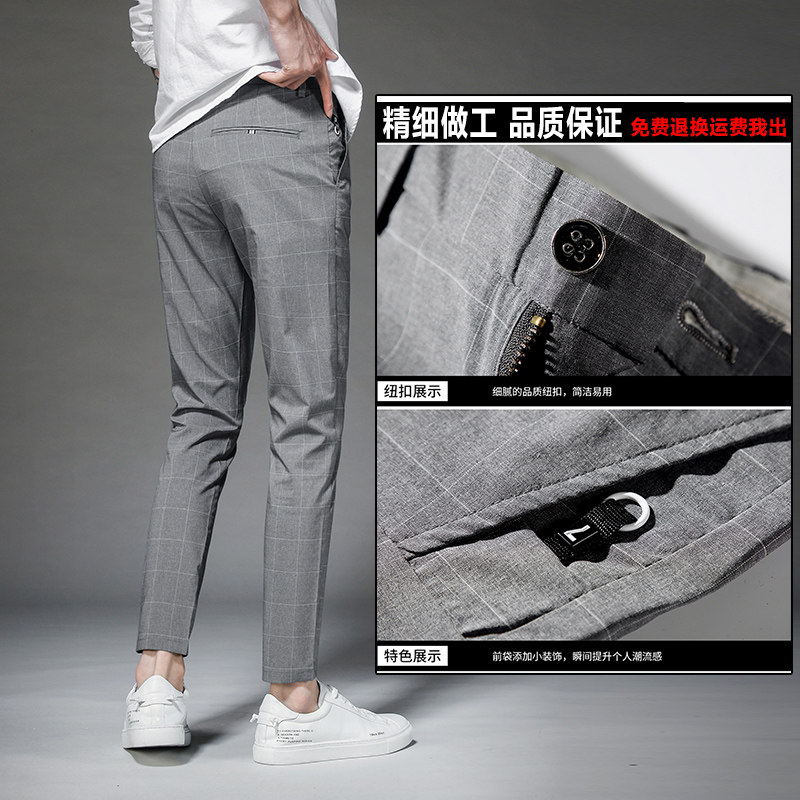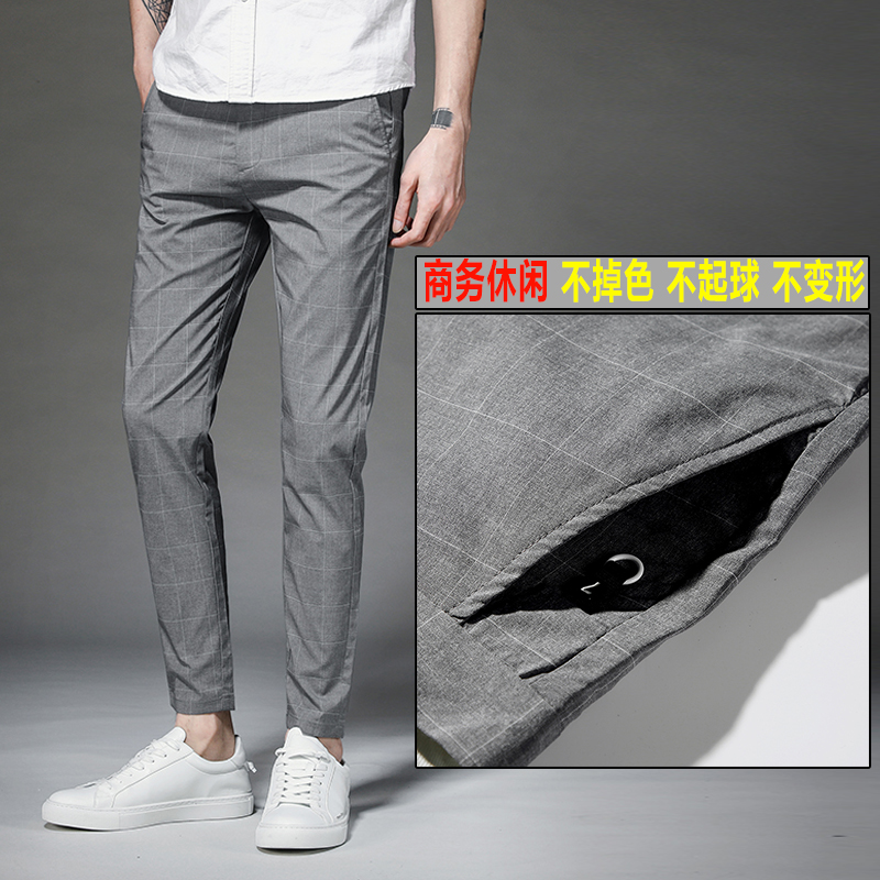 Men's pants summer thin plaid nine-point trousers Korean version of the trend straight tube slim fit autumn casual suit spring and autumn