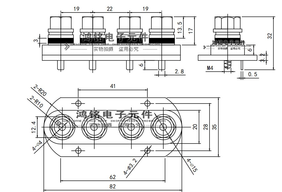 Horn amplifier output four-position terminal block pure copper speaker gold plated 4-bit external 4MM banana seat