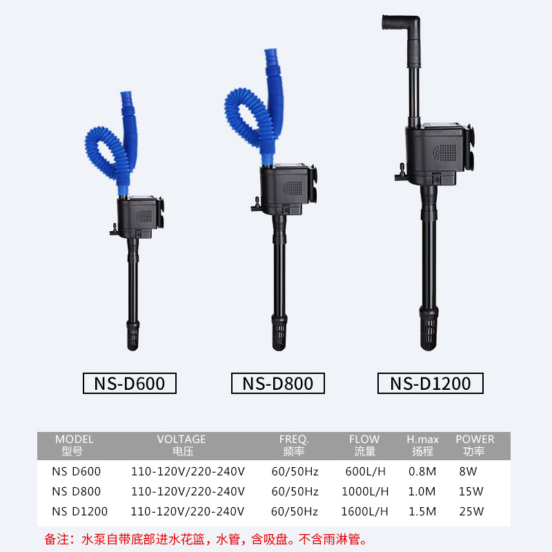 NS D600 (8w long version with suction cup) NS D800 (15w long version with suction cup) NS D1200 (25w long version with suction cup) NS 800